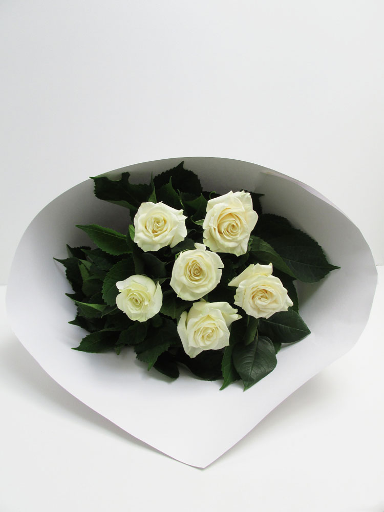 Valentine’s Day – 6 White Rose Bouquet – Wrapped